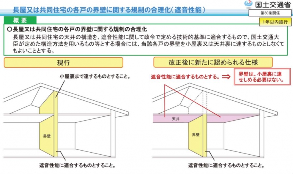 また、界壁には防音性能や防火性能が必要とされています。この壁の構造についても規定があり、自分の都合で仕様を変えてはならないことになっています。